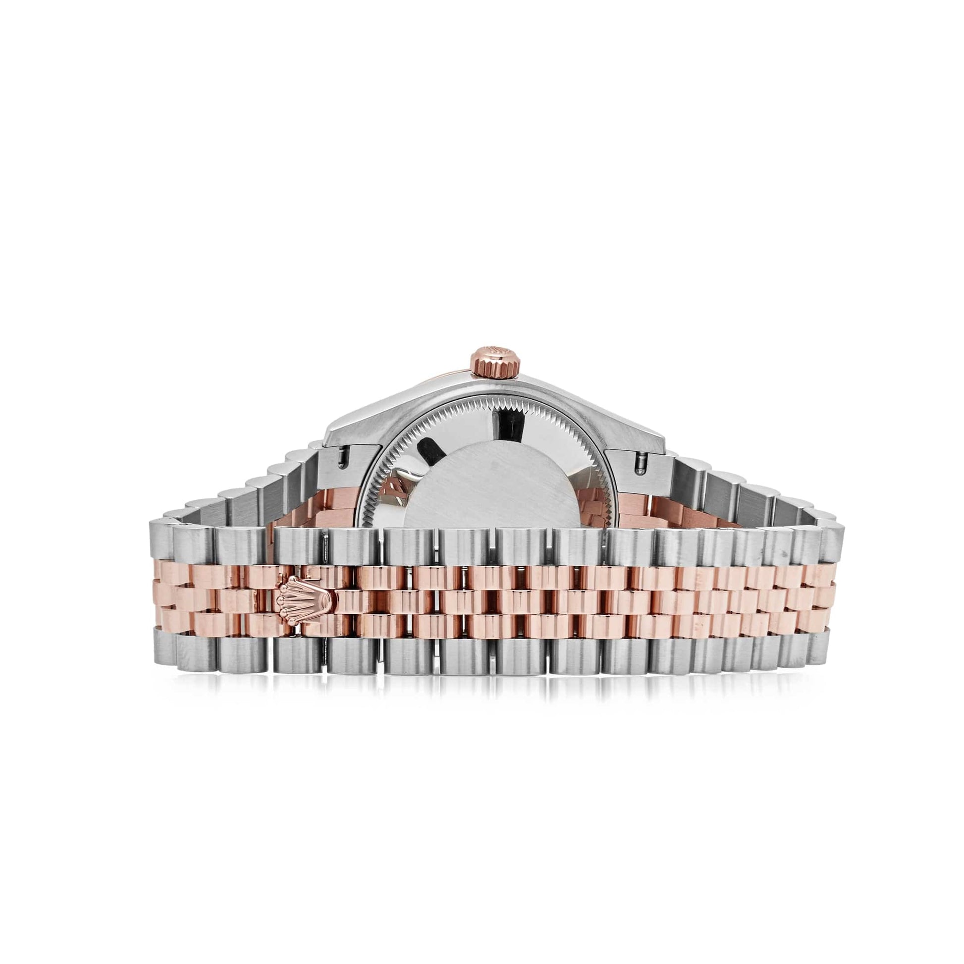This 2025 Watch Datejust 278271 is designed with a 31mm two-toned 18k rose gold and stainless steel case. chocolate dial. and styled on a two-toned jubilee bracelet. The dial hosts Roman numeral hour markers. rose gold hands. and a date display window at 3 o'clock. Whether you're out for a night on the town or heading to the office. this timepiece is a subtle and elegant choice that will surely be noticed.